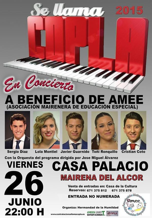 Este viernes 26 en el Teatro de la Villa del Conocimiento y las Artes de Mairena, la Hermandad de la Humildad organiza el IV Concierto de Se Llama Copla. Este año como ya anunciábamos, los beneficios irán destinados a la Asociación AMEE.