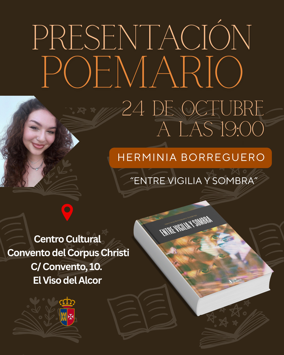 La autora mairenera Herminia Borreguero Gutiérrez presenta su libro de poemas “Entre vigilia y sombra” mañana viernes día 24 de octubre en el Convento del Corpus Christi de El Viso del Alcor a las 19:00 horas. A través de sus páginas, la joven escritora y poeta nacida en 1.995, explora en verso la soledad, el amor y la memoria con una construcción compositiva que combina introspección y sensibilidad, transformando la experiencia personal en un lenguaje poético que invita a sentir y reflexionar.
