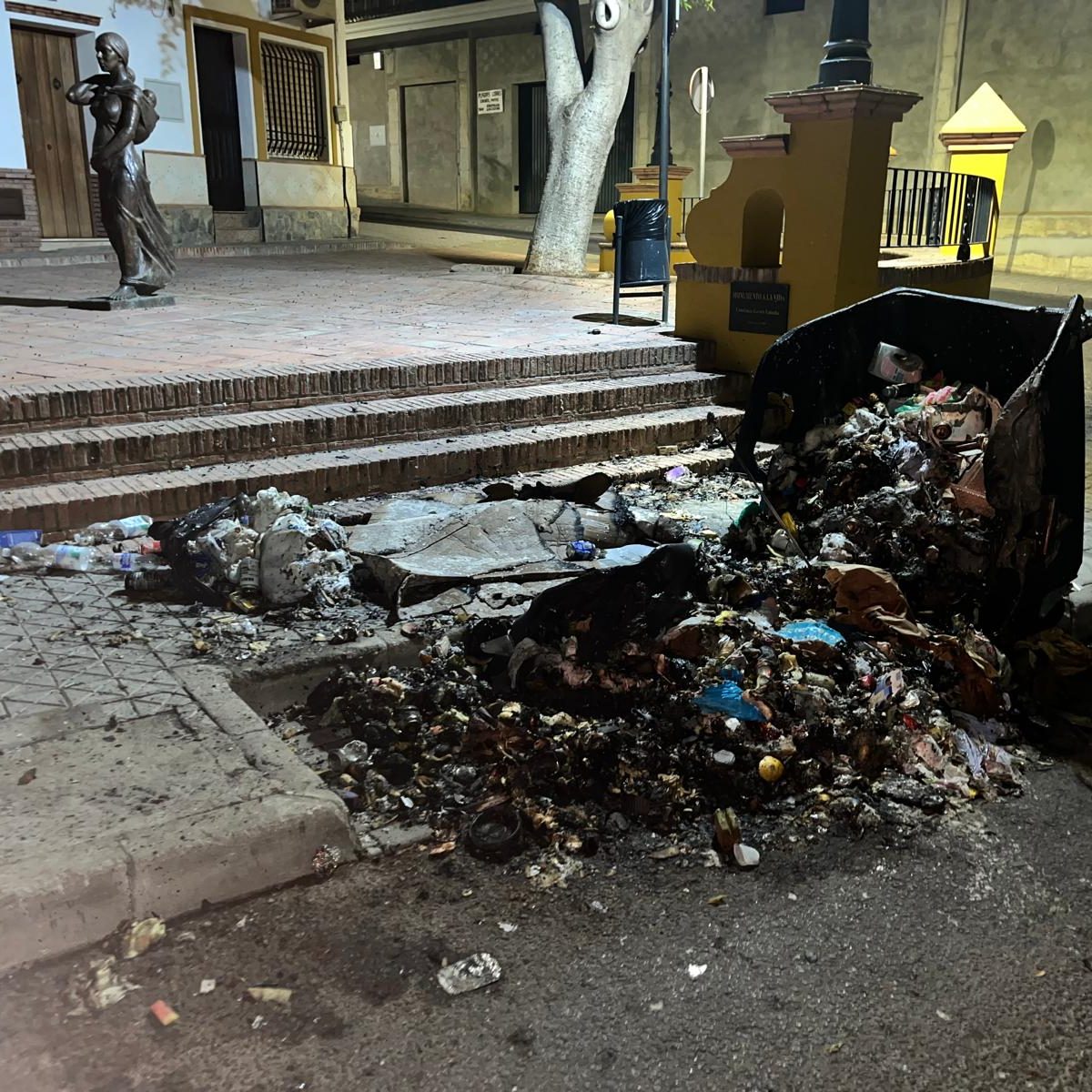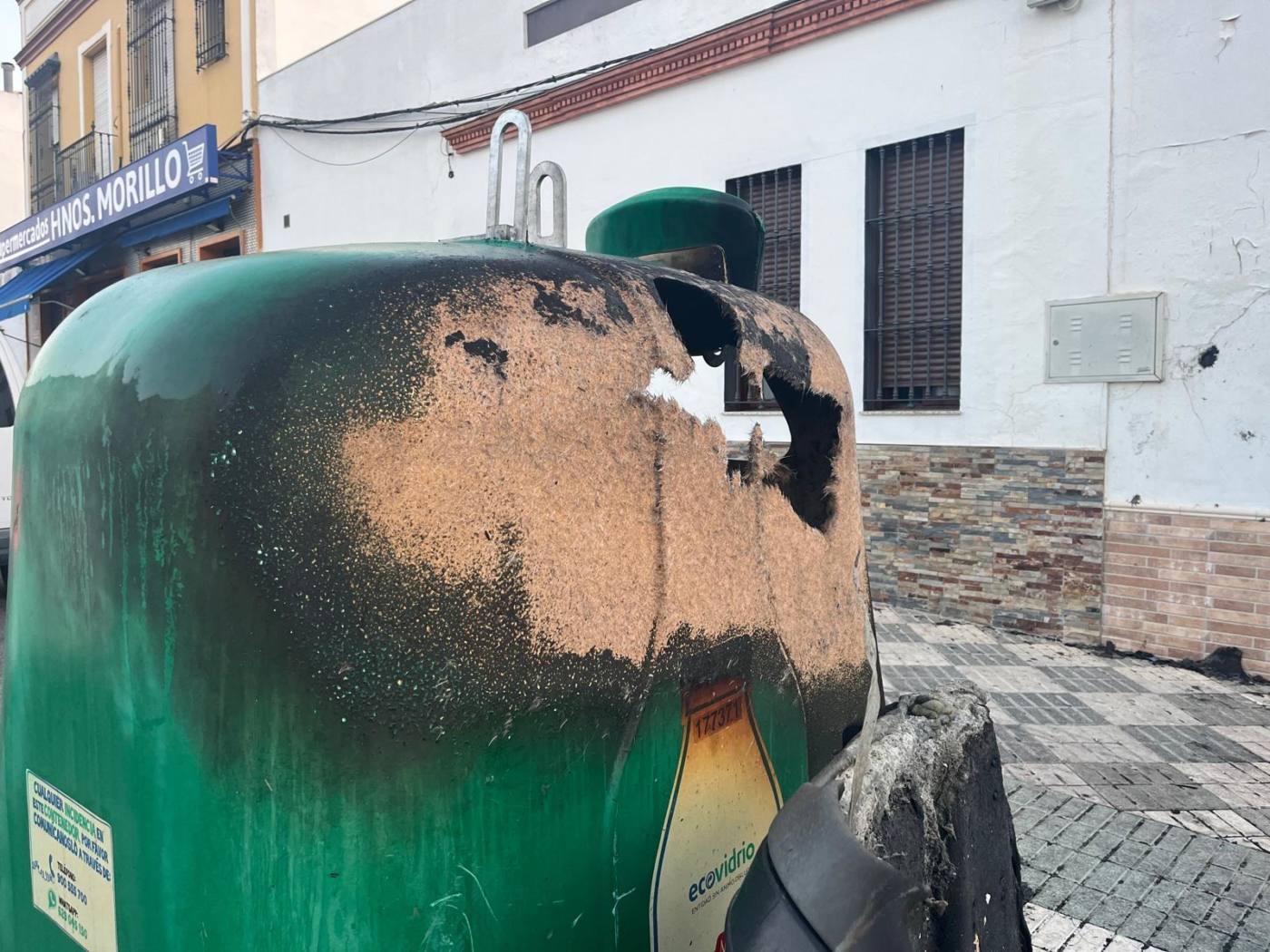 En cuanto al primero de los salvajes episodios de esta tanda de agresiones al mobiliario callejero de Mairena del Alcor, tuvo lugar la madrugada del 15 julio. Triste honor el que cabe atribuir a sus perpetradores marcando con ese debut vandálico toda una serie de acciones de destrozo de elementos del viario público local, actos que no discriminaron tampoco entre contenedores de basura orgánica, reciclaje de papel, cristal o vidrio. Todos fueron prendidos, en esa ocasión teniendo como entorno la Plazoleta ProVida, al comienzo de la calle Marchenilla.