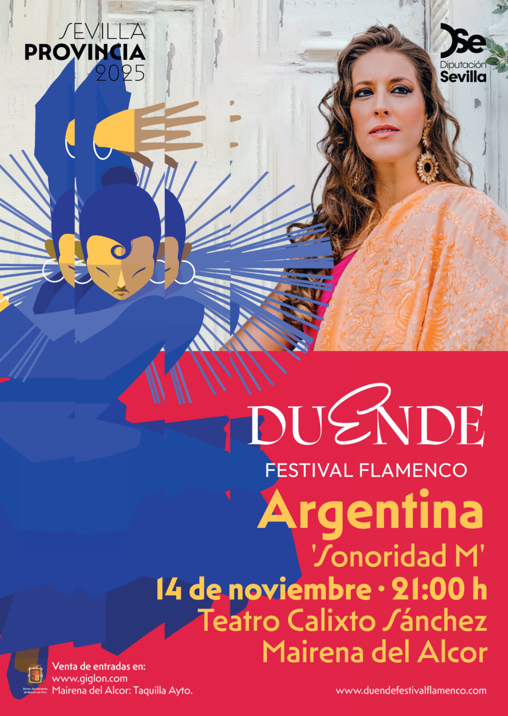 La cantaora Argentina presenta en Mairena del Alcor su nuevo espectáculo Sonoridad M (1842-2024), una propuesta que rinde homenaje a la mujer en el cante flamenco. Con su poderosa voz, sensibilidad y dominio de los estilos, la artista onubense recorre un siglo y medio de historia para rescatar, reinterpretar y poner en valor la huella femenina en el arte jondo. Porque con Sonoridad M (1842-2024) Argentina revisita los cantes más representativos en un cuidada selección de palos que viajan desde la soleá a la seguiriya, recalando en las tarantas, cantiñas o bulerías; y todo ello con una mirada contemporánea y una emoción profundamente arraigada en la tradición.