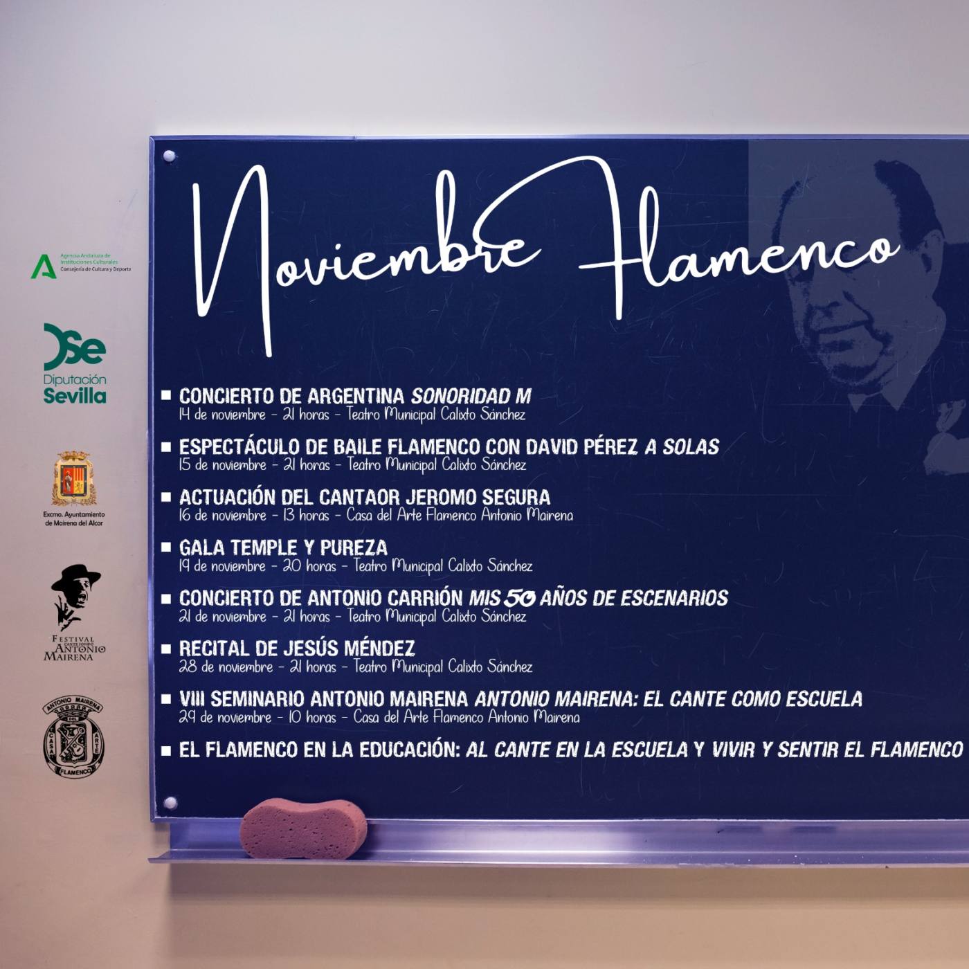 No obstante, todavía restará una última iniciativa, en este caso a través del Seminario Antonio Mairena, que alcanza su octava edición consolidado como espacio de encuentro, reflexión y aprendizaje en torno a la figura del maestro mairenero y la esencia más profunda del cante jondo. Bajo el título “Antonio Mairena: el cante como escuela”, esta edición se celebra el 29 de noviembre en la Casa del Arte Flamenco Antonio Mairena, y propone aprender escuchando, comprender cantando y enseñar sintiendo.