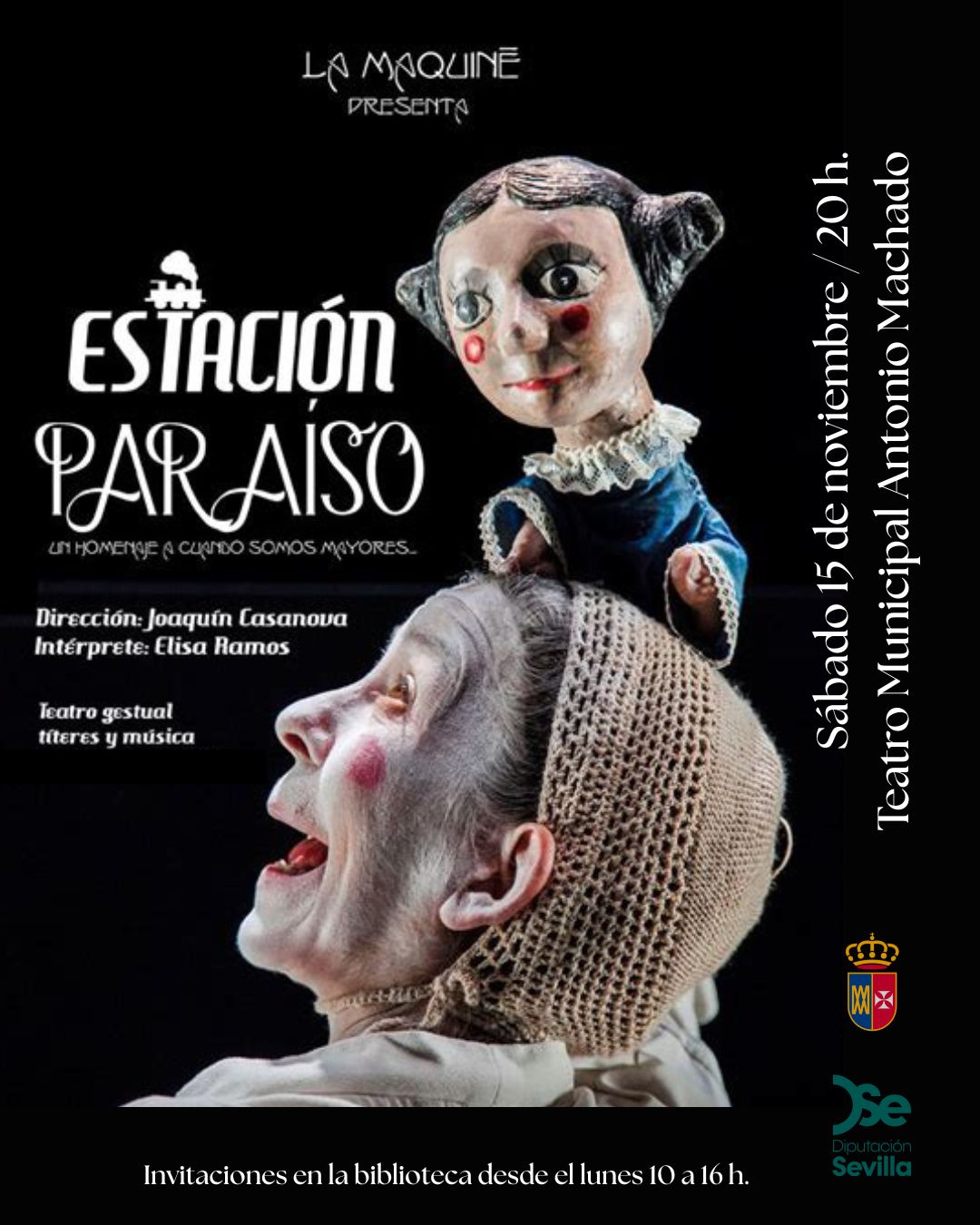 La Delegación de Cultura del Ayuntamiento de El Viso del Alcor y la Diputación de Sevilla presentan mañana sábado la obra teatral ‘Estación Paraíso’ a cargo de la compañía ‘La Maquiné’, que podrá disfrutarse desde las 20 horas en el Teatro Municipal Antonio Machado, con acceso mediante invitaciones.
