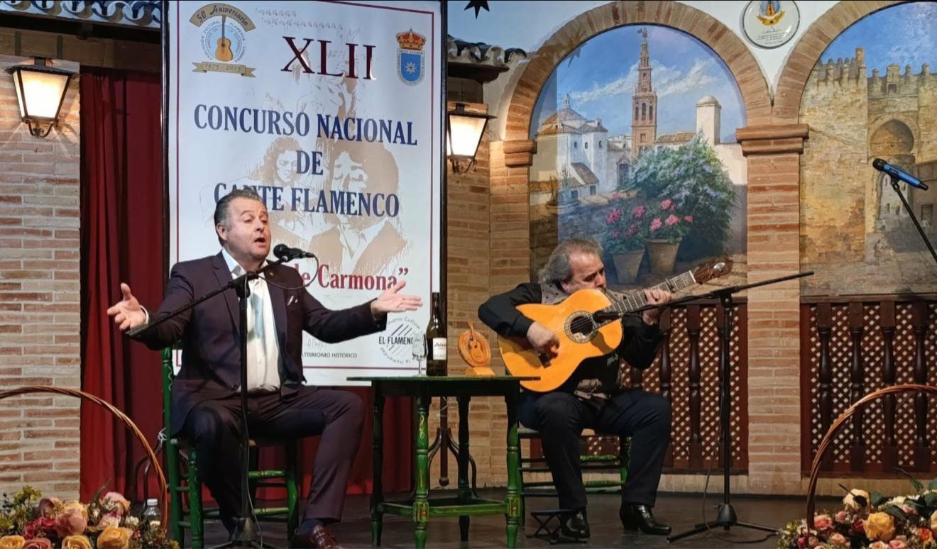 De ese modo casi se cerraron las iniciativas de la edición 2025 del Concurso Nacional de Cante de Carmona; casi, puesto que la última de ellas tuvo lugar el pasado sábado 29, consistente en un homenaje al guitarrista oficial de este certamen desde hace años, el carmonense Manuel Fernández Perales, cuya trayectoria fue resaltada por el mairenero Antonio Reyes Peña. Fue un acto que en lo que se refiere al cante contó con la intervención de otros dos cantaores de Mairena del Alcor, Paco Morillo y Antonio Ortega hijo.