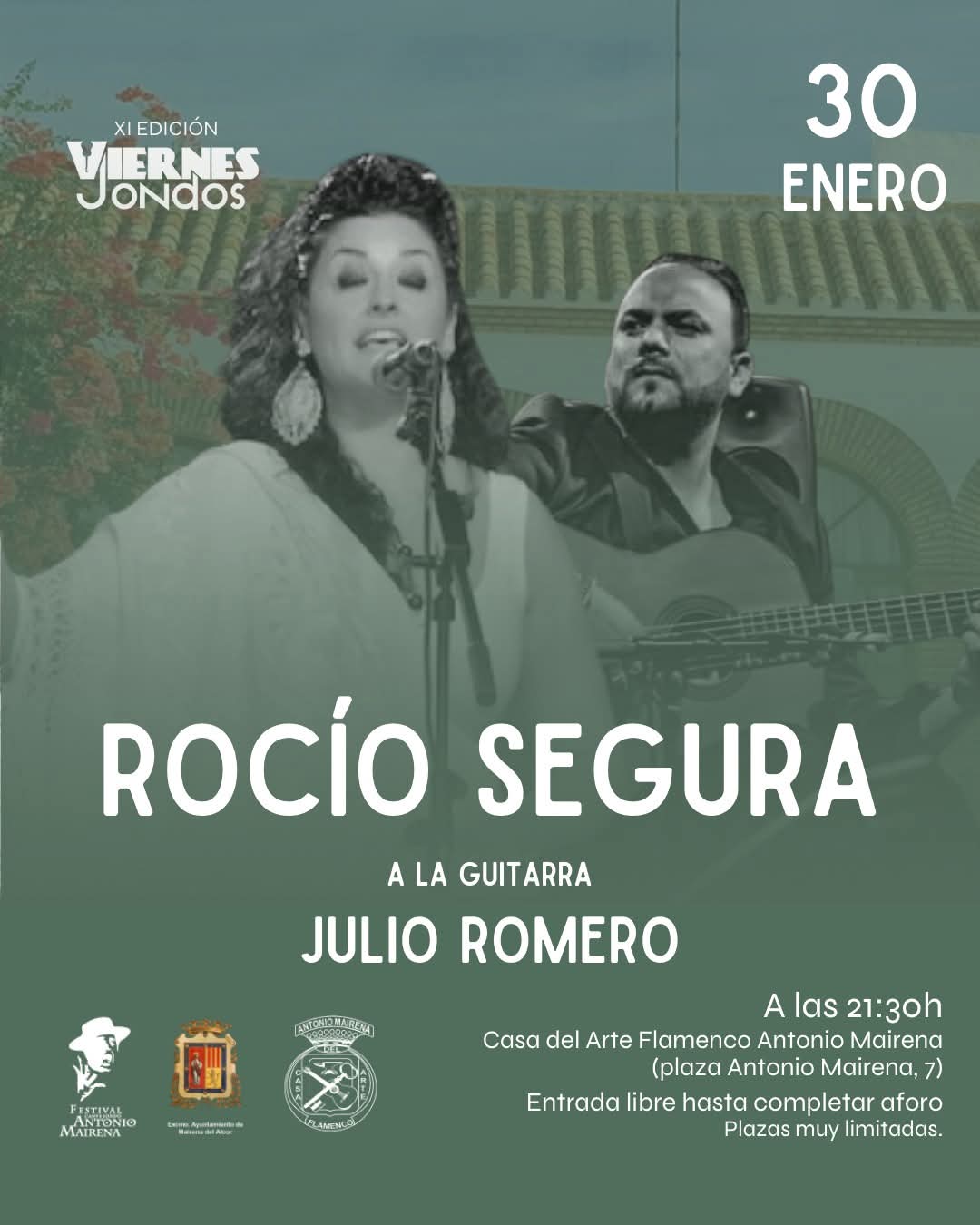 Este vienes día 30 de enero a las 21:30 horas en la Casa del Arte Flamenco Antonio Mairena con la guitarra acompañante de Julio Romero