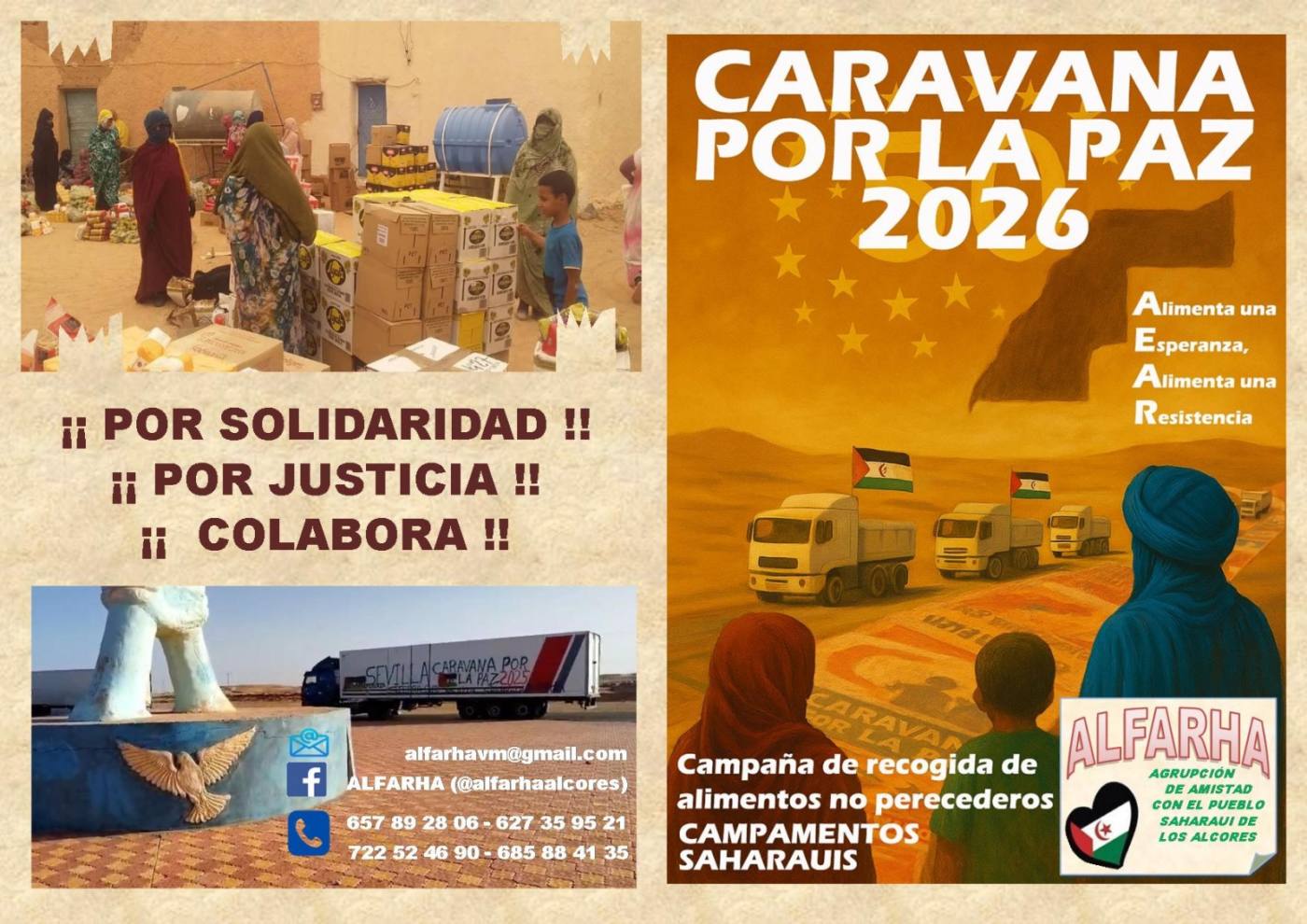 La Asociación de Amistad con el Pueblo Saharaui comienza ya su campaña preparatoria del Programa Vacaciones en Paz 2026, que en la comarca de Los Alcores se canaliza a través de la Asociación de Amistad con el Pueblo Saharaui de Sevilla y la Agrupación de Amistad con el Pueblo Saharaui de Los Alcores (ALFARHA). En esta ocasión, además de los preparativos para la búsqueda de familias de acogida para la estancia veraniega de cada año, el arranque lo marca una campaña de recogida de alimentos con destino a su envío a los campos de refugiados de Tinduf, en la vertiente argelina del desierto del Sáhara. Con tal sentido, la campaña ya ha sido presentada ante los medios de comunicación en la Sala de Prensa del Ayuntamiento de El Viso del Alcor, y también se hará en el Ayuntamiento de Mairena del Alcor.
