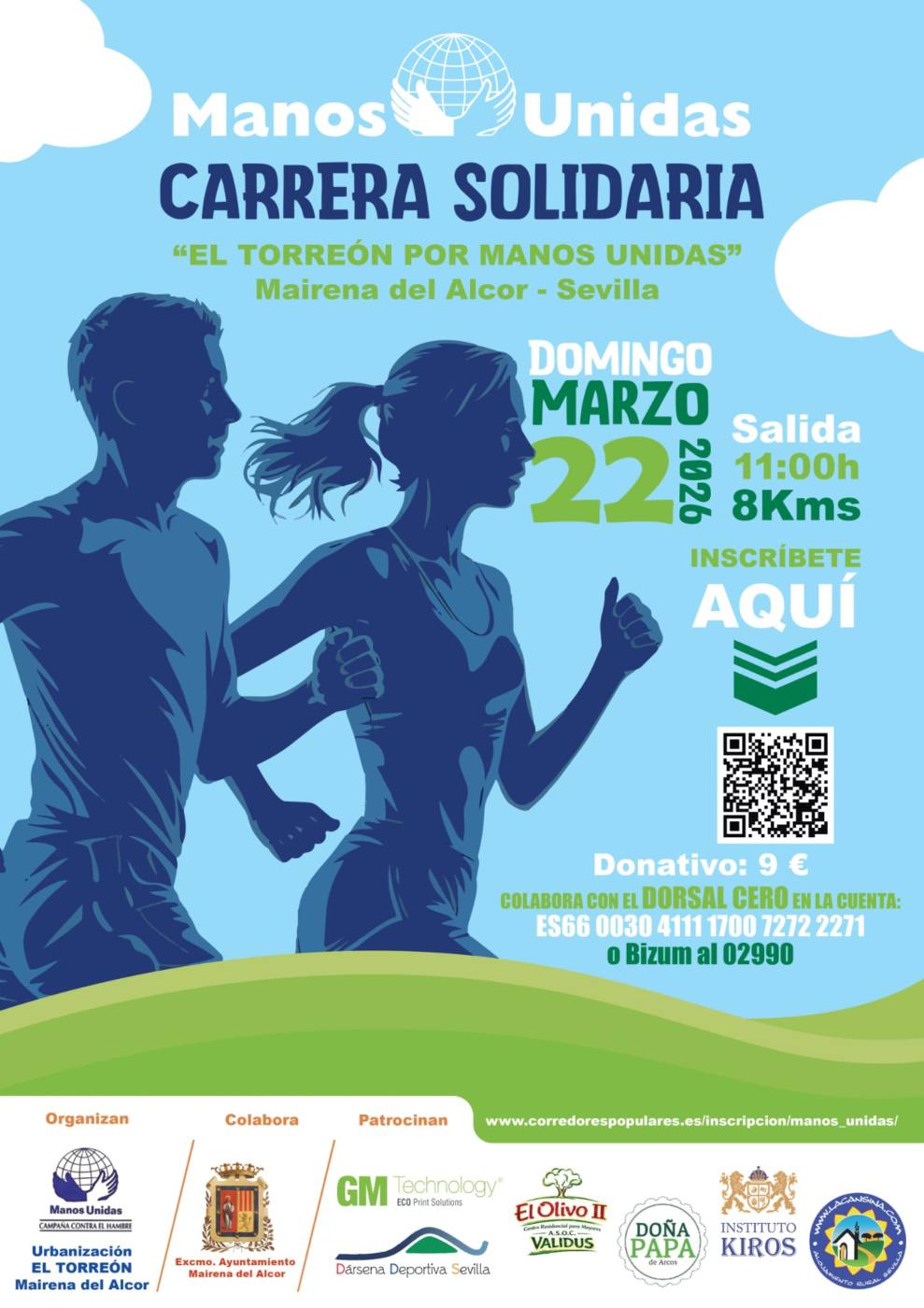 La organización no gubernamental (ONG) Manos Unidas, junto a la Comunidad de Propietarios de la Urbanización El Torreón, de Mairena del Alcor, organizan su II Carrera Solidaria, que han fechado para el domingo 22 de marzo. Tendrá salida y retorno desde la propia urbanización, a pie de la autovía de Los Alcores entre Alcalá y Mairena del Alcor.