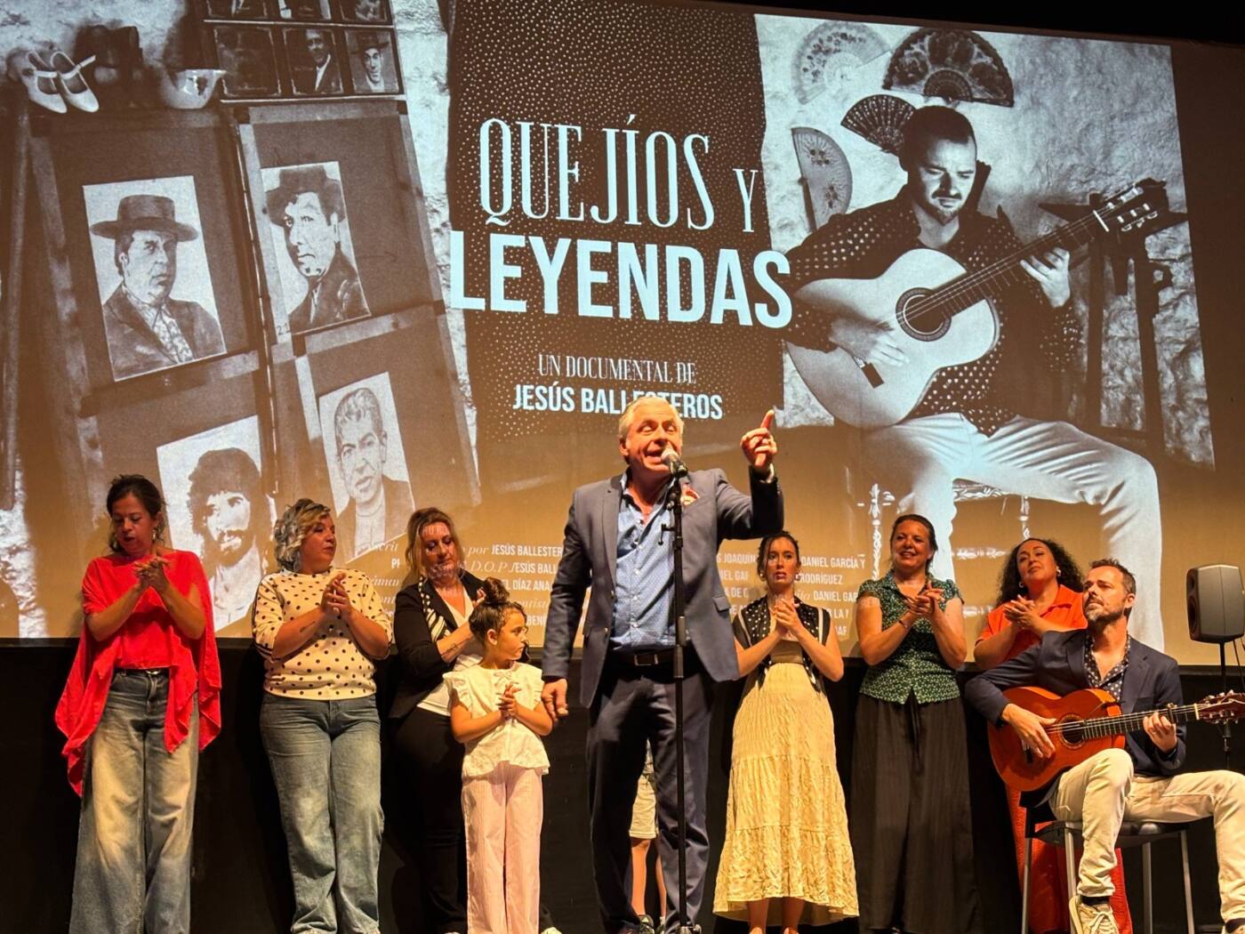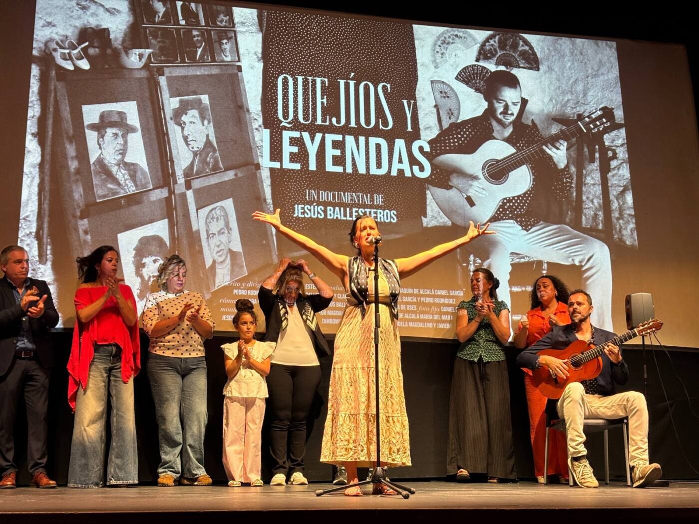 Tras la proyección de la nueva obra audiovisual, conocidos artistas locales que participan en la grabación, subieron al escenario para cerrar la cita con una demostración por cante, baile y palmas que deleitó a los asistentes.