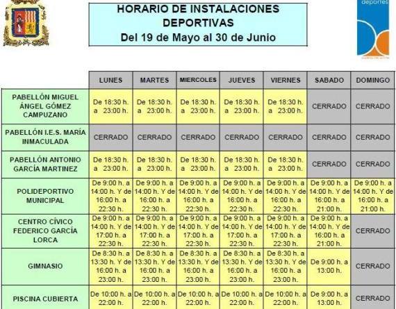 Nuevos horarios de instalaciones deportivas (19 mayo a 30 junio)