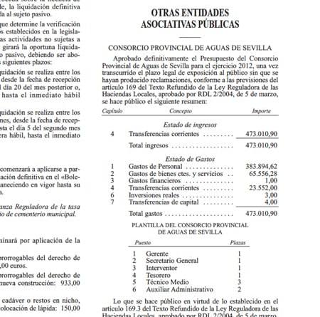 El Consorcio del Agua gastará el 81,15% de sus 473.000 euros en personal