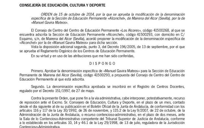 Ya es oficial: Sección de Educación Permanente Manuel Gavira Mateos