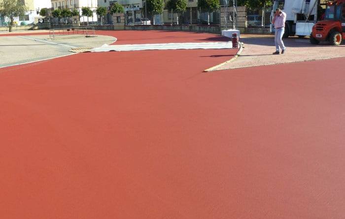 Alquitranado de la nueva rotonda situada frente al inicio de la carretera de Brenes